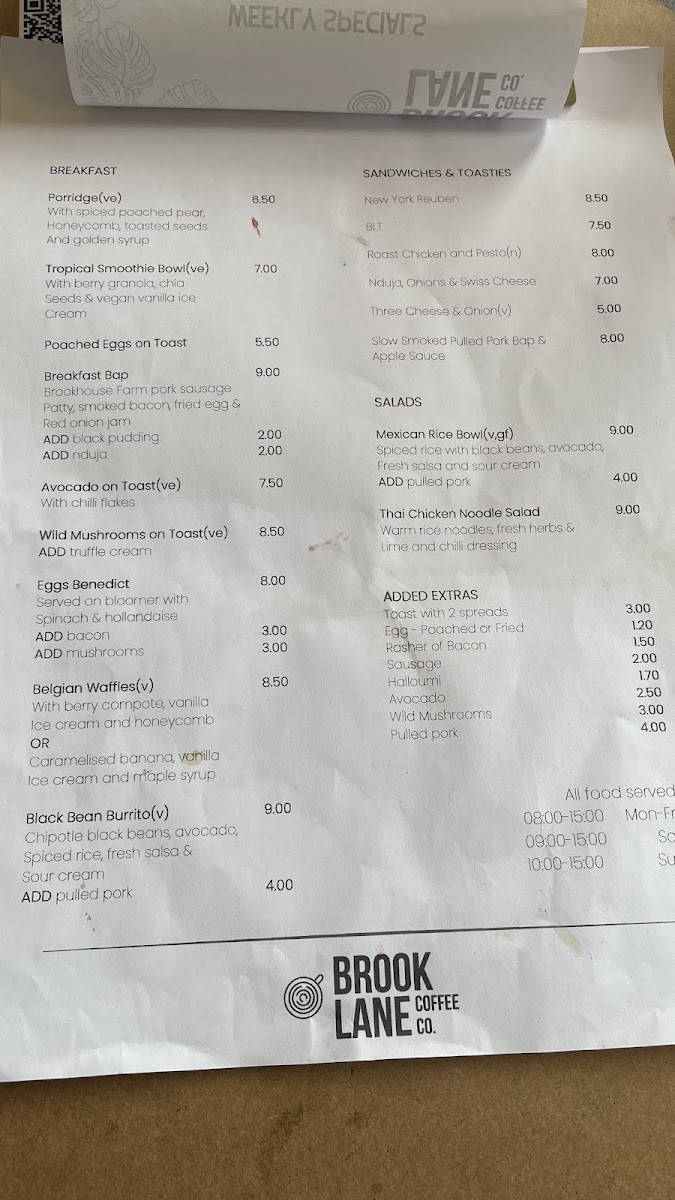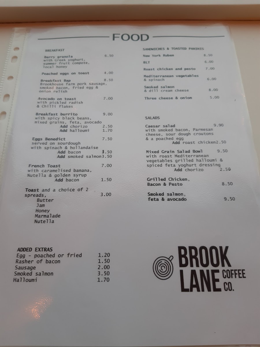 Brook Lane Coffee Co Menu